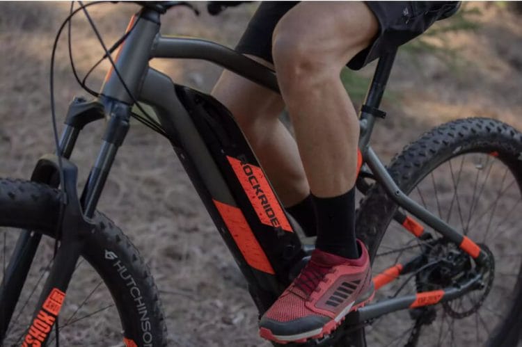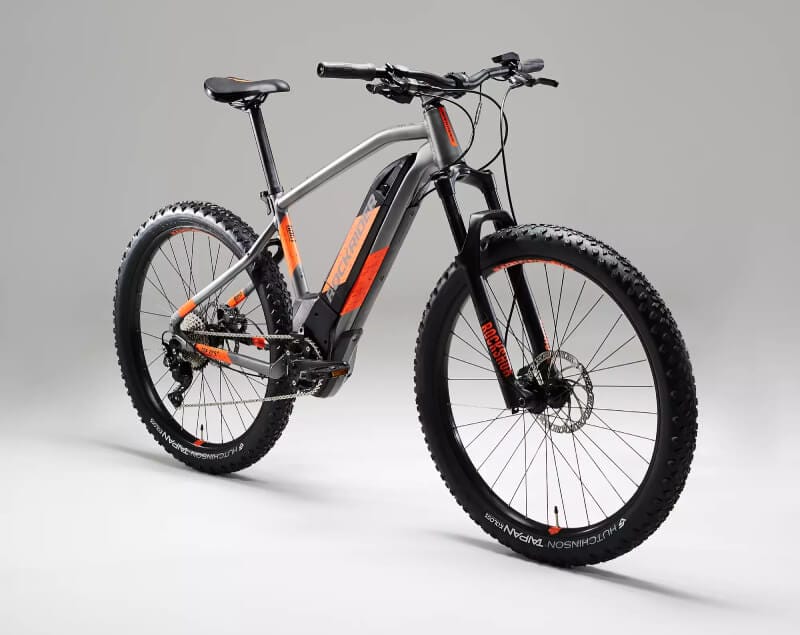 Suspension wise this electric bike has the Rockshox JUDY fork with 120 mm of travel and can ride over any obstacles such as pebbles or uneven terrain. These forks are pretty decent when you take into account the Rockrider’s overall price, they are also hydraulic and pneumatic. Overall the fork provides a pretty decent suspension for off-roading on this bike, compared to other bikes of this price that are normally fitted with a Suntour fork, this a winner.